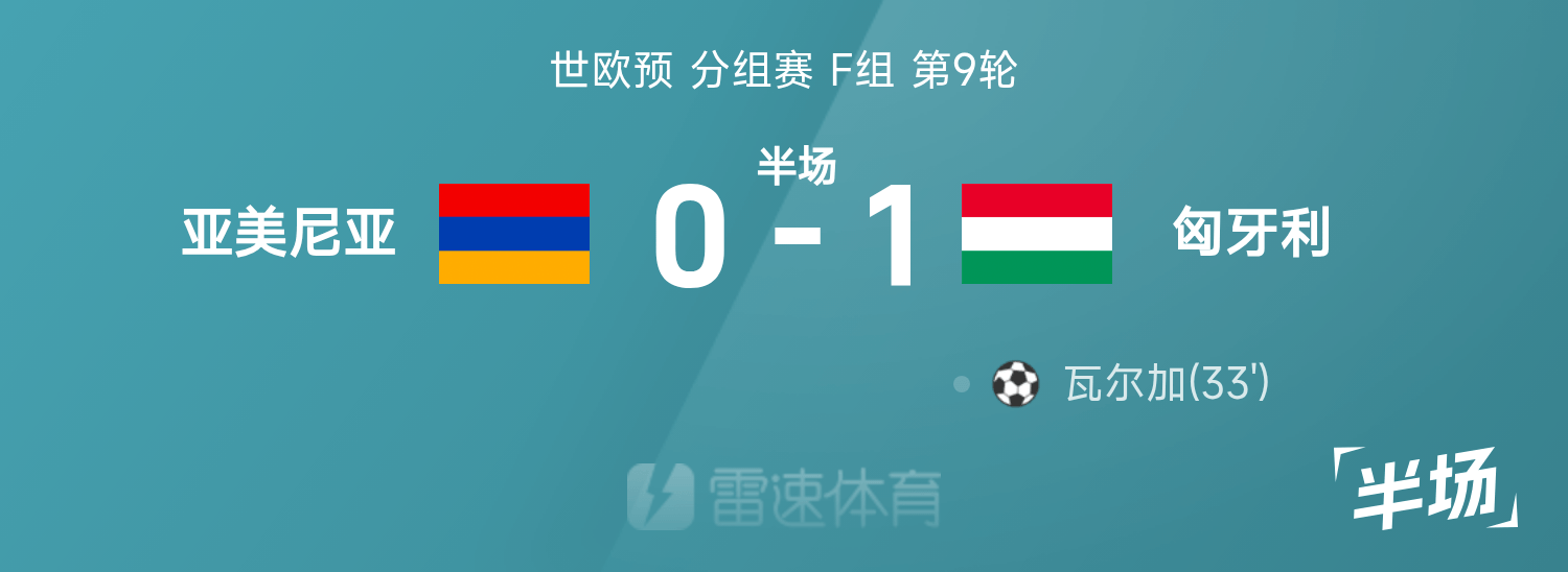 世欧预半场:瓦尔加破门,亚美尼亚0-1匈牙利